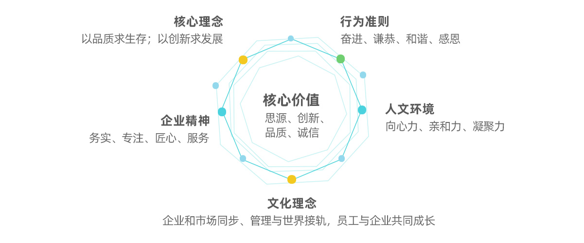 以生产为基础;以研发销售为核心;以产品质量为生命。多年的风雨历程,积淀了优秀的企业文化,铸就了独特的企业之魂。这是企业的精神财富,是企业不断推动发展壮大的内在动力。
